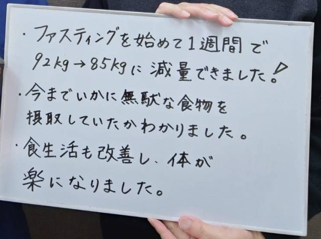 ファスティングを始めて一週間で92㎏→85㎏に減量できました!